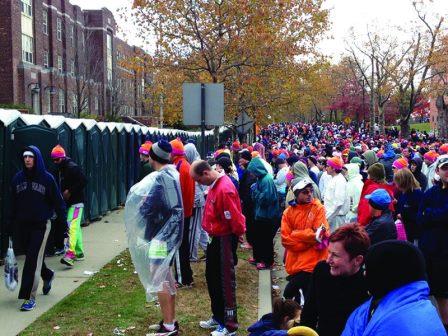 The line was sooooo loooong. The list of participants is staggering: marathon = 1,500 runners; 10K = 750 runners; 5K = 750 runners. Which means that the biggest challenge tomorrow will definitely be ...
