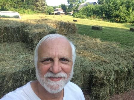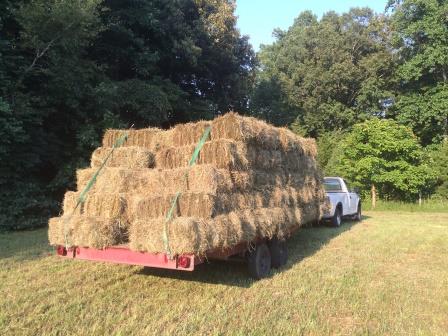 4) Then back home just in time to get up tons of hay. I had to stop several times to sit in the shade and drink buckets of water. "Why in the world do I do this?" I asked myself. Well, (1) it's hard work, and hard work is good for the old bod, (2) few other farmers get up square bales because it's too labor intensive (which means that in the winter I have a corner on the market when it comes to horse-quality square bale hay), and (3) I can leverage my hay sales for international mission trips. Ain't I smart!?