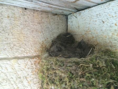 It's encouraging to know that I'm in good company. Every marriage goes through phrases where intimacy seems to be lacking. I know mine did. Every parent experiences closeness at times and distance at other times with their children. That's pretty normal. And every local church faces "growth stages" when disunity drives it to come face to face with the real issues and perhaps deal with them openly and honestly. More importantly, our relationship with God can easily become perfunctory. In a crowd of Christians, sure, I can act very Christian. But God isn't fooled by my play-acting. I know full well when He's close -- and when He isn't. Our goal as Christians should be to penetrate beyond the surfacy stuff in our relationships and move toward "that mysterious inward force we call life." Ever talk to a Christian couple who has been married for a very long time? They will admit they've had a roller-coaster experience of feelings toward each other. There have been bright days, and there have been stormy days, exuberant highs and devastating lows. But when they talk to you they'll probably end by saying something like, "But it's been worth it all." You see, Jesus really is the vine. He's our access to life and spiritual health. He left no doubt about it: If you abide in Me, you will enjoy real life. Perhaps it's time we stopped white-washing our relationships. And, I have a feeling that if I would start first with my relationship to God, my other relationships would all fall into place. Friday, May 8 7:34 PM She started building her nest weeks ago. She situated it in the far corner of the porch.
