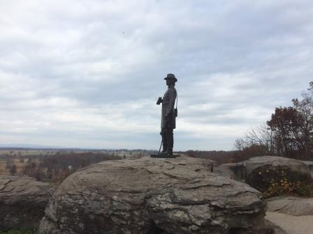 20) The Federals resisted repeated Confederate attempts to flank the Union Army. The struggle for Little Round Top was ferocious. But none of this was obvious on this peaceful November day.
