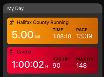 2:04 PM Just fed hay to all the animals, having earlier gotten in a 20-mile bike at the trail between LaCrosse and Brodnax, VA.
