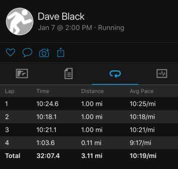"Pictures" is one of the most exhilarating pieces ever written. The brass section's performance was brilliant. And to think that the entire piece was composed to honor a friend who had died. Praise be to God! Saturday, January 13 12:12 PM It was a beautiful day for a run. I got in 5 miles at the local rails-to-trail course at a 13 min./mi. pace.