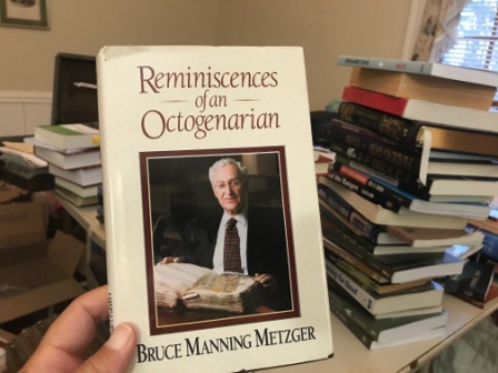 Again and again and again I have said, Forgive me, Lord. But please, oh please: do this work in me. A new year is perhaps a good opportunity to take a personal inventory to determine how much of the fruit of the Spirit is grown in our lives. Christianity is not a fish on our car or hands held high in a church building. It is love -- love for God, love for others, and even love for ourselves, a recognition that you are a unique creation of God and a person He wants to love and use despite your scars, your inadequacies, your idiosyncrasies. As Chief Physician, Jesus has diagnosed us all with a terminal illness called self. But, thanks be to God, He has established a hospital for sinners. It's high time, don't you think, that we checked ourselves in. 8:14 AM Guidance. Yes, ladies and gentlemen, that's the word of the day here at DBO. "Your word is a lamp to guide my feet and a light to guide my path" (Psa. 119:105). As Christians, we have a guidance system -- a best-selling collection of 66 books that guides our feet and illuminates our path forward. These books are collectively called the Bible, but the Bible is actually one book in two volumes, and the first volume is especially replete with testaments from men and women who trusted God completely as well as people who completely disregarded Him. The Old Testament tells it like it is, warts and all. But the overriding message is a simple one: God desires us to experience a full and rich life, and He will guide us out of whatever dark space we happen to find ourselves in, whether it's our fears of what the future holds or our tears over a broken relationship. The Bible, however, is not the only guidance system out there. As we've often said on this blog, Christian biographies can come alongside the Bible and give us example after example of how God indeed has a magnificent plan for our lives that exceeds our wildest imaginings. Bruce Metzger's memoir is a good example of this.