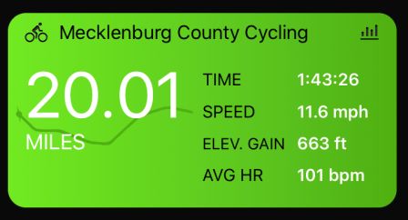 My ride totaled just under 2 hours and covered almost 17 and a half miles.