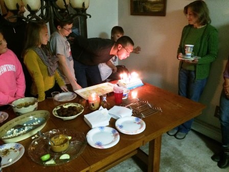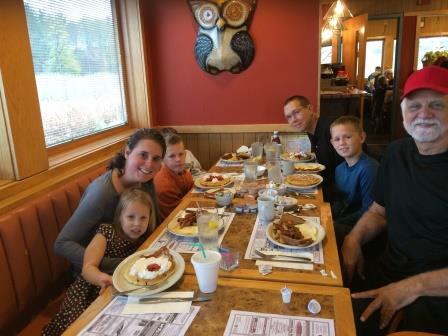 6) Here's Caleb cooking pancakes for his dad's birthday breakfast. They tasted scrumptious, Caleb!