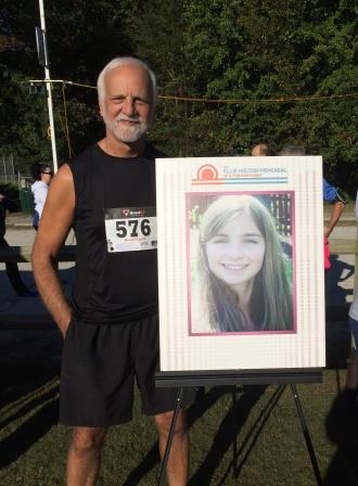 With all the kids and grandkids I've got, these are good things to know. Mind ... heart ... hands. That's really what this 5K was about. Alone, there's not much we can do. Together, we can change the world. Todd and Karen chose one of my favorite verses from one of my favorite New Testament books as their theme verse for the race: "Let us run with perseverance the race marked out for us" (Heb. 12:1). Today I witnessed genuine Christian community at work. The church, someone once said, should consist of communities of loving defiance. That's how Ellie's parents are facing their sorrow. Yes, they experienced loss. Yes, someone they loved dearly died. But that doesn't mean that God's plan has been ruined. He knows each of us by name. He has a personal love for each and every one of us. When He cried "Zaccheus," here at last we saw a man who really cared for people as individual persons. It is equally significant that Jesus calls us into community. We live in an age of great individuality, but today Todd and Karen took their grief public, so to speak, hoping to leverage their tragedy for good. It's not surprising that followers of Jesus are often eager to do this. Every particle of this world has been polluted by the sin of man and is under the hand of the Evil One. Yet Christ has ushered in a new creation -- "creation healed," in the memorable words of theologian Hans Küng. Ellie is now in heaven, but perhaps God can use her death as a means of helping other children in households all across America and the world. I've been praying really hard that this event will reach its goal of being able to fund the Chair of Research in Honor of Ellie Helton. I do pray it did. As for me, I'm so glad I came today. It was a joy to meet and speak with Todd and Karen. It's obvious that both of them are relying on a Power greater than themselves to give them the strength and resolve needed to overcome their loss. Running these 5Ks has taught me so much about myself. They've taught me that I can go farther than I ever thought I could. Running has equipped me with the resolve and endurance I've needed to rebuild my broken life after Becky's death that had me in its grip. Of course, the race wasn't easy -- it never is when it's held at my all-time nemesis venue: The WakeMed Soccer Park. During the race my legs kept begging for rest, but their cries fell on deaf ears. Even if it meant crawling over the finish line, I wasn't going to stop and rest. Indeed, the race came down to what Heb. 12:1 says the Christian life comes down to: perseverance. And that's a lesson we can all learn. Below: Here I am with a picture of Ellie, remembered for being a "vibrant, loving 14-year old."