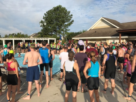 8) Here's the last picture I took prior to the start of the swimming leg as I had to return my iPhone to my bike rack. Everyone sort of milled around and chatted for an hour or so before the race festivities began. It took about a good hour after the first swimmer started for yours truly to begin swimming his laps.