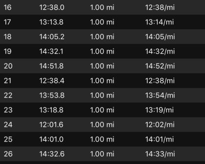 Sure enough, at around mile 13 I began to fall behind. My legs were beginning to feel like lead, and though I continued to run it felt like I was merely walking fast.