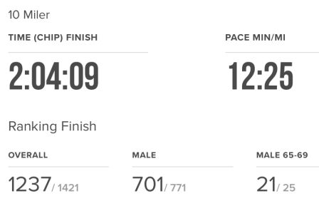 Thankfully, every mile of the race provided live music for the runners, and that always gives me a burst of much-needed energy. I love running through the neighborhoods of Virginia Beach, including Camp Pendleton. I was holding a steady pace, but I was slowing down. The last mile or so of the race was on the breezy boardwalk, so I felt good as I headed toward the finish. In case you're interested, here are the stats from my Garmin.